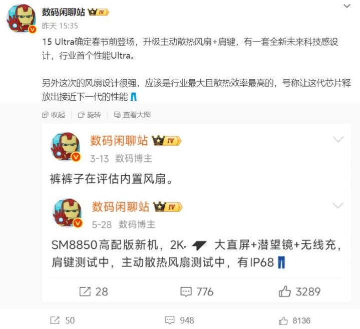 据博主数码闲聊站爆料,iqoo 15 ultra确定会有,而且在春节之前就能登场,屏幕应该还是之前那块三星2k直屏,显示效果比较强。