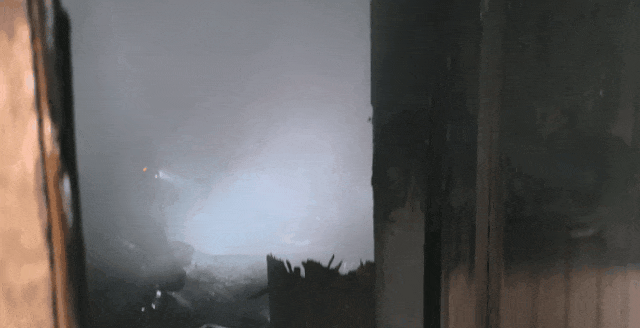 消防员在屋内展开扑救。