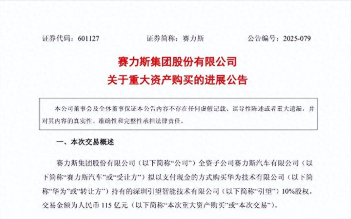 115亿现金全部付清股票配资平台下载,赛力斯正式“买票上车”!