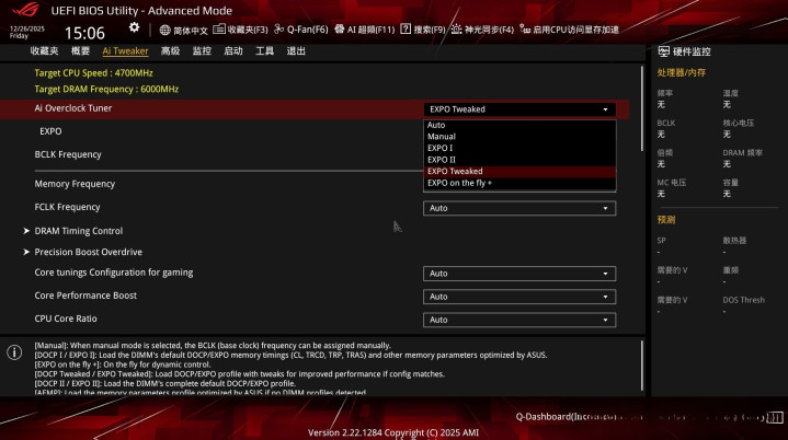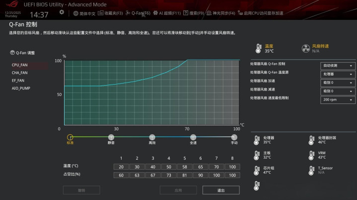 华硕BIOS是ROG的核心优势,这款延续纯血风格,有EZ MODE和Advanced Mode。EZ MODE适合新手,快速调EXPO内存超频、Q-Fan散热——Q-Fan有5种预设,“静音”模式风扇随温度调整,不会“满载噪音爆炸”;“性能”模式保持高转速,确保供电温度稳定。Advanced Mode适合超频玩家,能调CPU PBO参数,动态调整电压和频率,不超温度墙的情况下提升性能。64MB BIOS容量还能支持未来CPU升级,比如明年的锐龙9000 Refresh,不用换主板就能用。