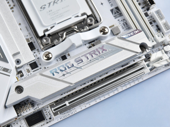 ITX扩展往往“做减法”,但这款做到了“加法”。内存是双DDR5插槽,支持EXPO/AEMP,搭配锐龙8000能超到9600MT/s,这在ITX里算顶级。存储是两组PCIe 5.0 M.2,正面有独立散热盔甲,背面也有导热垫,解决PCIe 5.0 SSD的散热问题(比如三星990 Pro满载70℃,有散热能降10℃)。连接方面,Wi-Fi7天线做了吹雪姬涂装,信号比普通强30%,2.5G网口应对网游低延迟;音频用SupremeFX ALC4080芯片,比普通ALC897强,游戏脚步声定位更准,听音乐有Hi-Fi感。